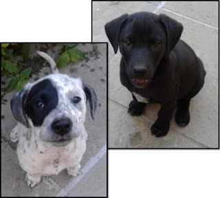 Casal de filhotes sem raça definida, com três meses e meio de idade, desverminados e vacinados. Serão de porte grande, necessitam de amplo terreno ou sítio. Fêmea branca com manchas pretas e macho preto com peito branco. Contatos pelo fone (53)3221-2482.